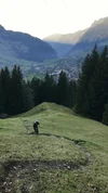 Our second hike to Pfingstegg started from the town center through the beautiful Swiss chalets and up through varying terrain for two miles and 1,500 feet of elevation gain (starting at about 3,000 feet). The only hike without a panorama view, the solitude of being alone without even animals, and the variety of terrain on this mountain hike are what made this so worthwhile. The trip down during sunset was through the regular hill path, but with a steady 20% grade- hiking poles a necessity to absorb the shock to the legs going downhill.